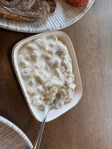 We didn’t order much — still recovering from a previous dining misadventure — but what we did try left a strong impression. The lamb was tender, with a crisp edge and that unmistakable flavor that keeps bringing you back to the Caucasus. We also had a yogurt dish with grilled eggplant — versatile enough to serve as a sauce, but frankly good enough to enjoy on its own. It looked more generous in the menu photo than it appeared on the plate, but the flavor more than made up for the portion size.