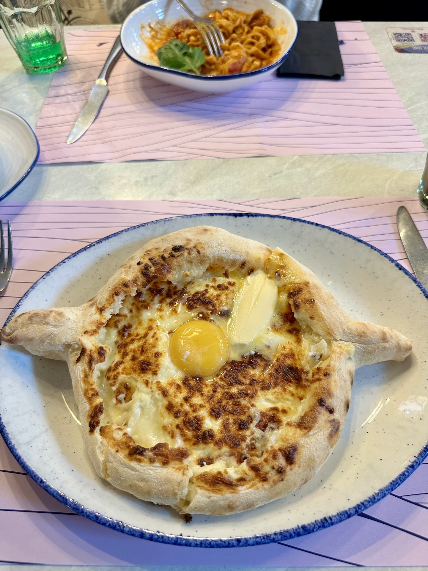 Adjarian Khachapuri, a culinary sonnet, graces the tables of Puri Gulian like a whispered secret—a promise of flavors yet untasted. Here, each dish unfurls its canvas, inviting you to partake in an opus of taste. Let your senses be the compass, your appetite the guide. For here, every bite is a stanza, every sip a verse—a feast for the soul. 🌟🍽️🎨 Note: This review is a poetic tribute to the delightful experience at Puri Gulian. And beyond the Khachapuri, let me weave a tapestry of flavors for you: Loveberry Cocktails: Their hues reminiscent of twilight kisses, they arrive—a symphony of berries and spirits. Sip, and let the notes linger—an ode to summer’s sweet embrace. Mixed Forest Mushroom Soup: A chiaroscuro of earthy tones. Imagine ancient oaks whispering their secrets, their roots entwined with tales of dew-kissed fungi. With each spoonful, you sip from the well of woodland wisdom. Colorful Tomato Salad: A palette of crimson, gold, and emerald. Sun-ripened jewels, they nestle on a bed of verdant leaves. Taste the sun, the rain, the soil—the very essence of sun-kissed afternoons. Duck Pâté: A velvety sonnet, its richness a nod to midnight feasts in candlelit chambers. Spread it on warm bread, and let the flavors dance—a waltz of indulgence. Chicken Stew with Ginger Sauce: A crescendo of warmth and spice. Picture a hearth, flames licking the edges of a copper pot. The chicken, tender as whispered promises, bathes in ginger’s golden embrace. And the staff—like brushstrokes on canvas—paint hospitality with grace. They are the keepers of stories—the ones who whisper, “Welcome...