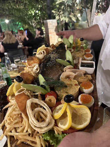 Read moreDiese Location in Tiflis ist eine gelungene Mischung aus Restaurant und Discothek. Die Lage direkt am Fluss ist super, die Aufmachung neben einer Felswand mit herunterströmendem Wasser schon ziemlich spektakulär, allein wegen dieses Wildnisfeelings, welches hier vermittelt wird, lohnt sich ein Besuch. Es ist Platz für mindestens 120 Gäste (grobe Schätzung). Zum Fluss hin gibt es eine Bühne mit Tanzfläche davor, die gut besucht war. Es läuft relativ laute Disco -Musik, zu der es auch Live-Gesang gibt, absolut professionell, aber: Wer in Ruhe essen und sich dabei unterhalten möchte, ist genau deshalb hier falsch. Zum Essen selbst: Es gibt fast alles, was man von georgischen Speisekarten kennt in unterschiedlicher Qualität, wobei das natürlich auch Geschmackssache ist. Wir waren uns einig, dass das Chatchaburi (Georg. Käsebrot) zu sehr nach Quark schmeckte, dasselbe mit Bohnenfüllung war gut. Gulasch war sehr lecker gewürzt, aber wenn man nicht weiß, dass einige der Fleischwürfel noch Knochenteile enthalten, kann dass schon unangenehm sein. Kebab schmeckte nicht wie frisch gebacken, sondern eher wie vorproduziert und Mikrowelle, aber okay. Der Salat war sehr gut und die gebratenen Champignons eine echt schöne Überraschung. Bier war kalt und süffig, die Auswahl an Weinen dürfte für jeden etwas bieten. Das Personal sehr freundlich und aufmerksam, es gab keine unnötigen Wartezeiten, aber man ist hier natürlich nicht in einem Schnellimbiss. Die Sanitäranlagen waren sauber, aber zu klein für die Menge an Gästen, zumindest was die Herren betrifft. Insgesamt empfehlenswert, wenn man die genannten Punkte berücksichtigt. Das Lokal lief früher unter dem Namen "Tar Laura", wobei ich nicht weiß, ob ich das jetzt richtig verstanden und...
