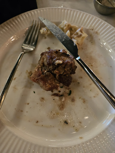 I really wanted to enjoy The Blue Fox, but the menu I found through Google Maps was different and they didn't allow me to order the item I wanted from that online copy. So I ordered the pork bbq, and I regret it. The flavor was okay but the meat was way overcooked and really tough. And nothing but a full knife to try to cut it. It completely ruined what was otherwise almost a 4 star experience. The staff and service was pretty good. The atmosphere was good except somewhere close by a piano player kept playing slightly off tuned and choppily which at times competed with the music here till they turned that off. So only sour note random tunes that helped to diminish the ambiance. A few small changes and this place could be great. Or great again as I feel they were better in the past. A short clip that hopefully captured the sour essence of the...