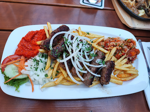 Das "Restaurant" selber haben wir nicht getestet. Wir haben am Imbisswagen davor, der offensichtlich dazu gehört, gegessen. Für Teller und Besteck haben wir jeweils 0.50 Cent bezahlt. Heißt 4 Euro Aufpreis bei 4 Personen beim speisen vor Ort und das bei eh schon sehr happigen Preisen. Knapp unter 10 Euro für ne Currywurst Pommes. Geschmacklich aber in Ordnung, so fair sollte man sein.