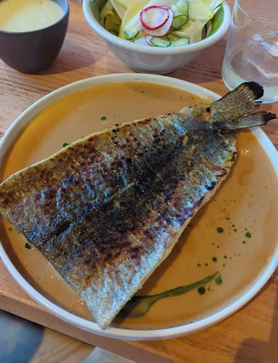 Read more„Außer große Macht folgt große Verantwortung.“ So ganz gerecht wurde man der Erwartung leider nicht. Ambiente ist optisch sehr ansprechend und trifft voll meinen Geschmack. Lediglich die Lautstärke/Musik mir persönlich etwas zu laut. Die Vorspeisen, Kopfsalat, Tatar und Fischsuppe, waren alle drei geschmacklich nah an der Perfektion. Das Tatar war angenehm fein abgeschmeckt, die Fischssuppe war intensiv und der Salat sehr spannend, allerdings hatte ich das Gefühl, dass vielleicht etwas zu viel mit Rauchöl oder ähnlichem nachgeholfen wurde.