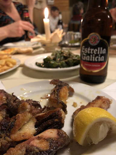 Wir hatten verschiedene Tapas, unter anderem, Sardellen Sardinen, Tintenfisch und Garnelen. Alles war wirklich sehr schmackhaft. Die Preise liegen zwischen 6 und 8 € und sind wirklich fair. Es gibt ein bisschen Brot dazu und wir hatten uns noch ein Töpfchen Aioli bestellt. Der Hauswein war auch sehr lecker. Zum Nachtisch gab es noch ein Stück spanischen Mandelkuchen. Auch der hat sehr gut geschmeckt.