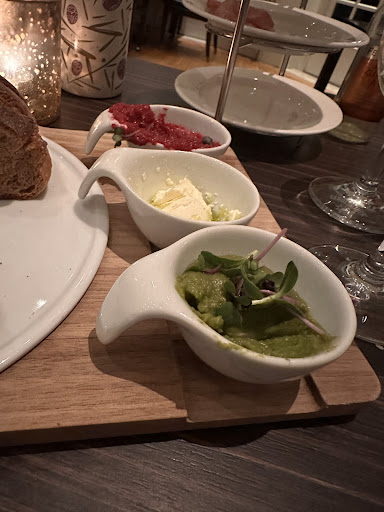 Zur Suppe â die zudem nur lauwarm serviert wurde â wurde das Brot erst auf Nachfrage und deutlich zu spĂ€t gereicht. Auch die Dips zum Sauerteigbrot blieben â mit Ausnahme des Rote-Bete-Dips â aromatisch schwach und hinterlieĂen keinen bleibenden Eindruck.