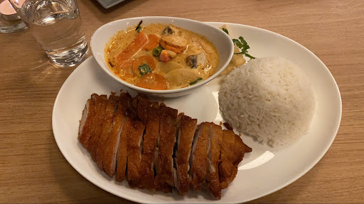 Food had great taste! We had Thom Kah Kai Soup (delicious!), Erdnuss curry with chicken & reiss (spicy, but delicious) and Green Curry with Tofu & reiss (very tastefull, little spicy). Frühlingsrolle also very nice. 5 tables, so not too crowdy. Good service. Also take away. Price= 20-30eu...