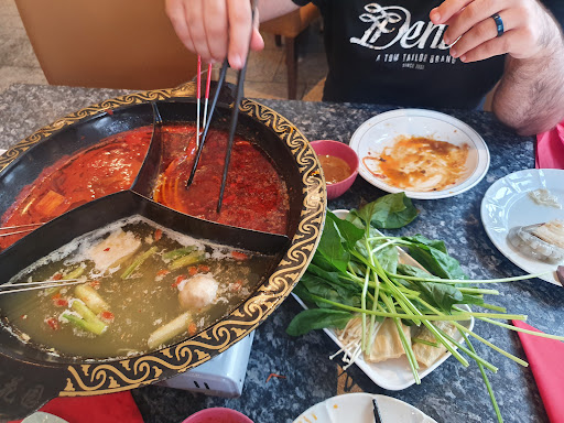 Proper authentic Chinese food and Hot pot. When you walk in, you immediately get that really good Chinese food smell,literally just like in many good restaurants in China. The staff are very friendly and ask upon seating if you would like the buffet or order from the menu. There are 3 soups to choose from,chicken,tomato and spicy. We got all 3. There is a fair number of things to choose from for the Hotpot, and the waiters will bring you either Lamb or beef slices- which they can top up when you ask. In the cold fridge theres a nice variety of seafood,tofu and also more exotic ingredients like duck blood and beef tripe,all good quality,which I haven't seen in many places. In addition to the hot pot ingredient buffet, there are hot and cold dish stations; all the dishes I tried were good,especially the cold spicy noodles. I also had a look at the actual menu, which was massive and the portions were rather large,so definitely for sharing. Will definitely be...