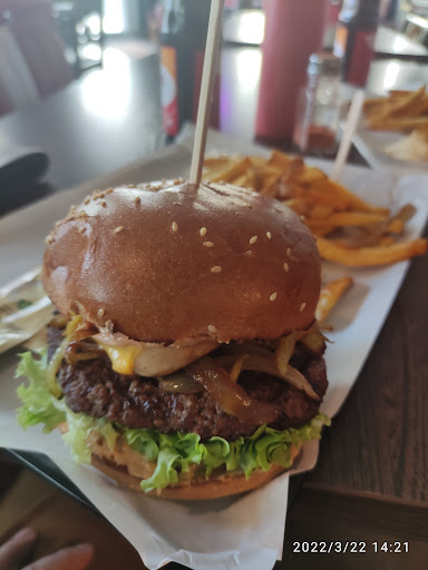 Read moreLovely burger place! I had a large roadhouse burger and it came between two brioche buns. The buns were lovely, and did not get soggy throughout the meal. A large meal sets you back 13 and a small meal is 10 euros with fries and a drink. The meat was tasty but you do not have a choice as to how well you want the meat done. The fries were surprisingly good and made from cut potatoes with the skin still on. However mine were overseasoned and were a little too salty for my liking, thus costing them one star.