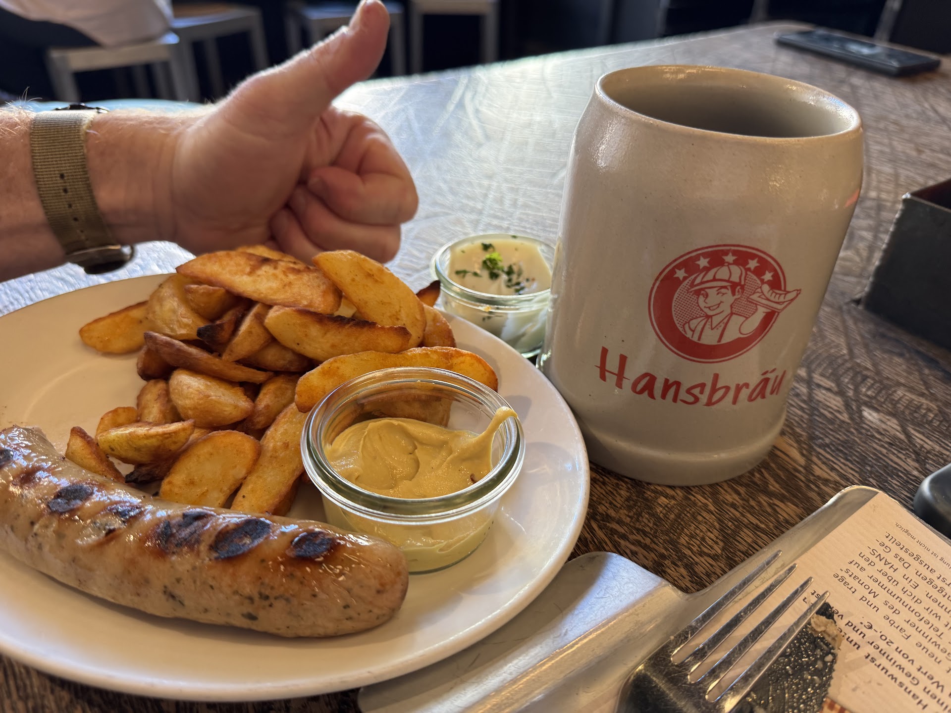 I had been told a few times that I need to stop by here and have a Wurst and beer. So happy I did. Myself and my girl got the sampler for two plate with extra sauerkraut. And ordered a large dark beer for me and a whit for her. While waiting for our order we immediately noticed the excellent music they were playing. From Mississippi blues to Dean Martin’s Volare with vocal back up from the kitchen staff. I had the best feeling thinking that the guy singing along with Dean is making our food. Great vibe. Food was fantastic, as was the beer.