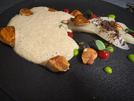 Read moreEines vorweg: Jede Rezension, die älter als Oktober 2021 ist, bezieht sich nicht auf das aktuelle (und ganz wunderbare) Esszimmer! Meine Frau und ich hatten einen tollen Abend im Juli, zunächst auf der Terrasse, haben später dann mit den neuen Bekannten vom Nebentisch und der Chefin Christiane den Laden zugemacht. In freundschaftlich gelassener Atmosphäre genossen wir die Künste von Oberspezialchefkoch Tim, alles war fabelhaft: Lakritz-Lachs mit Melonengazpacho, Chorizo Carbonara, Kalbsrücken mit Thymiankohlrabi und Kartoffelkuchen, Surf & Turf von Rind und Garnele mit Ponzu-Spitzkohl und zum Abschluss Joghurteis mit gebrannter Ananas und kandierten Oliven sowie Parfait vom Sanddorn, Erdnusskaramell und Popcorn. Die kleine Karte (findet man auch auf der Homepage) wird monatlich ausgewechselt, wir kommen vielleicht vorher schon wieder. Exzellente Qualität, vernünftige bzw. angemessene Preise und ein sehr aufmerksamer Service. Fazit: Eine ganz...
