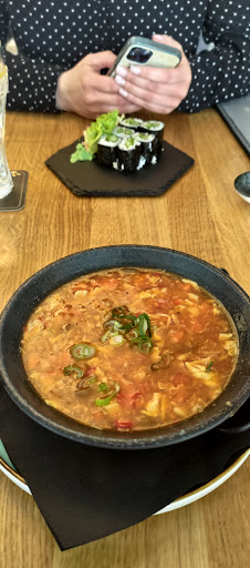 Das Ambiente ist mehr als mau, das ist nicht mehr als ein Pommesbude auch hinbekommt. Service war freundlich, allerdings hatten wir in 1,5 Stunden Aufenthalt sage und schreibe 5 verschiedene Kellner für unseren Tisch weil permanenter Wechsel herrschte. Demnach wusste der eine nicht was der andere bereits am Tisch besprochen hat. Das Essen war „ok“, mehr leider nicht. Das Sushi bekommt man tatsächlich in vielen Läden besser, zum selben Preis. Suppen, Hauptgerichte waren Mittelmaß, dafür muss man eigentlich nicht auswärts essen gehen wenn man einigermaßen selber kochen kann. Extrem störend vom Anblick war für uns der „Personaltisch“ direkt vor der Türe, wo permanent einer vom Personal mit dem Handy spielte, rauchte oder sich halb liegend auf dem Tisch ausruhte.