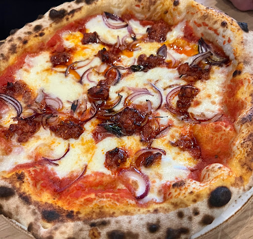Leider hat die Pizza sehr enttäuscht. Teig in der Mitte nicht durch, der Rand ist nicht fluffig wie es sein soll. Der Rand (außerhalb) muss eigentlich knusprig und von innen weich sein, sodass sich, wenn man den Rand eindrückt, der Rand sich selbst wieder aufbaut. Das war nicht gegeben. Weder das er sich aufbaut, noch das der Rand außerhalb knusprig war. Die Zutaten an sich waren super. Sehr bekannte Tomatensauce, super weiße Farbe des Fiori di Latte, aber der Teig ist einfach nicht gut gewesen. Außerdem wird der Teig nicht per Hand ausgebreitet so wie das bei einer neapolitanischen Pizza gemacht werden muss, damit die Luft wirklich komplett in den Rand eingedrückt wird. Die Pizza wird maschinell ausgebreitet, ist halt angenehmer für das Personal und auch für “ungelernte” leichter aber dann ist halt der Unterschied in der Qualität zu sehen, da die Luft niemals komplett in den Rand eingedrückt wird mit der Maschine, daher baut sich auch nicht wirklich ein großer Rand auf, und ich meine, das ist ja grad das schöne und leckere bei einer neapolitanischen Pizza! Die Pizza ist wenn man sie kaut auch sehr gummiartig. Tut mir eigentlich so leid für den Laden, weil die zunächst ein super Eindruck gemacht haben aber es ist die Wahrheit. Als wir gefragt worden sind ob die Pizza geschmeckt hat, hab ich höflich gesagt, “naja, leider nicht so wirklich” es wurde nur abgeräumt und garnicht gefragt weshalb. Warum dann überhaupt fragen!? Die allermeisten haben halt keine Ahnung von neapolitanischen Pizzas, anderes kann ich mir die hohe Bewertung nicht erklären. Hat aber mit einer guten neapolitanischen Pizza nichts zu tun.