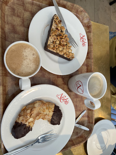 Great place for coffee ☕️ and a sweet pastry. Yes they have decaf 🤩. Lunch however might be better elsewhere. They have few lunch options and my chicken sandwich was dry and certainly not Chic-filet. The staff is busy and some obviously shy away from English speakers. Just get in line and take a picture of what you want. Then show it when you finally get someone’s attention so they can grab it for you when you reach the register. Save your receipt if you plan to take a tour of the Dom and you might get a free cookie with your tour ticket either the receipt of over 10 Euros. We came here twice in one day. First for lunch then for coffee and dessert. Here is what we learned. Find the English speaking staff. Return your bottles to the register for the deposit. Since they don’t offer free toilets you can your that towards the .50 cost of going to the toilet🚽🧻. We selected something that looked like Black Forest Cake, but after eating we decided it was something else. Anyway, it had cherries and while it was good and had some alcohol, it also contained a cherry pit 🍒. Yikes, the last thing I need on a foreign vacation is dental work. Just beware. One last thing. This place obviously is where the locals come for bread. We saw many come in just to walk off with large bags of bread 🥖. Again, great...