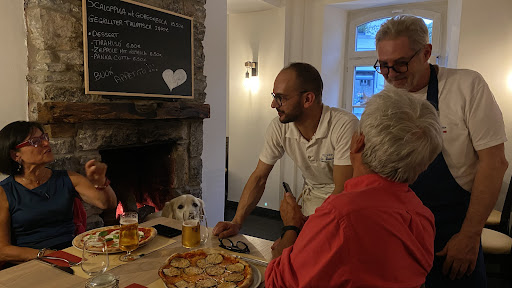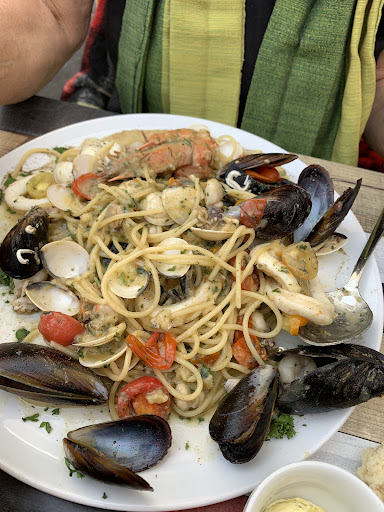 Read more11.10.2023: Da unsere erstrangige kulinarische Anlaufstelle leider Herbstferien machte, landeten wir in dieser Pizzeria. Wir konnten in dem kleinen Hof neben dem Haupthaus Platz nehmen. Ein idyllisches Plätzchen, wäre da nicht das Tor zur benachbarten, recht viel befahrenen Straße, dessen einer Flügel, auch auf Nachfrage, nicht geschlossen werden durfte. Dafür einen Stern Abzug, denn es war einfach zu laut im Außenbereich. Einen halben Stern zusätzlich gäbe ich für die problemlose Entgegennahme meiner Sonderbestellung: Pizza Margherita mit flächendeckend Pepperoni - sie war perfekt. Das zweite Gericht, Pasta Frutti di Mare, bitte nur bei ganz großem Hunger bestellen - die Menge war beachtlich! Dazu ein Glas Montepulciano d‘Abruzzo (sehr zu empfehlen). Der Service war sehr umsichtig und freundlich....