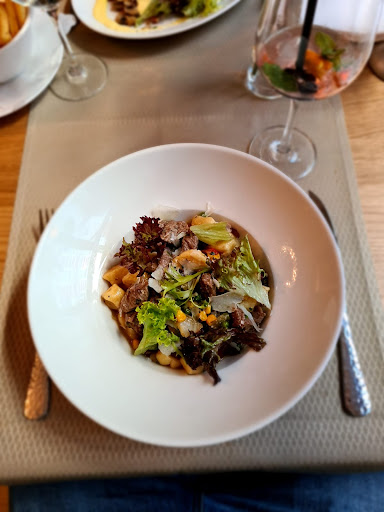 Sehr schön gestaltetes Restaurant in direkter Nähe zum Theater. Ambiente zum Wohlfühlen und ein sehr guter, aufmerksamer Service. Der Inhaber hat alles im Blick - und auch im Griff - und ist ein angenehmer Gastgeber, der seine Gäste - und nicht nur die Stammgäste - persönlich begrüßt und auch verabschiedet. Es werden sehr interessante Gerichte angeboten und natürlich auch einige Klassiker. Hier ist ein Hauch Kroatien zu spüren, der sich in einigen Gerichten auch wieder spiegelt. Wir waren am Abend mit vier Personen dort und bekamen neben der üblichen Karte eine "Herbstkarte" angeboten und auch noch einige Gerichte - Lammkarree, Heilbutt - die nicht auf den jeweiligen Karten verzeichnet waren. Zur Vorspeise entschieden sich unsere Freunde für den dalmatinischen Vorspeisenteller (für 2 Personen), meine ständige Begleitung nahm Muscheln und meine Wenigkeit Scampi und Pulpo. Der Vorspeisenteller sah a) gut aus und war b) reichlich bestückt. Geschmeckt hat er auch nach Aussage unserer Freunde, was man auch daran erkennen konnte, das alles weg war ……… Die Muscheln wurden in einem sehr aromatischen Sud mit mediterranen Kräutern serviert und auch Scampi / Pulpo waren als Vorspeise sehr gut abgeschmeckt und äußerst lecker. Hauptspeisen waren bei unseren Freunden: "Baba" - Schweinefilet mit Pommes und Saucen nach Wahl und bei meiner Begleitung Lammkarree mit Rösti und Ofengemüse. Lecker, wobei meine Begleitung keine "Rösti-Freundin" ist. Selber schuld wagte ich zu erwähnen, da der Chef des Hauses vorab bei der Bestellung diverse Alternativen erwähnt hat. Schön, dass man hier dann auch selber ein bißchen noch gestalten kann. Ich nahm den weißen Heilbutt auf einem Pilz-Kürbis Risotto. Klasse !!! Der Fisch - zwei große Stücke - war top gegrillt, fest und trotzdem saftig. Das - oder der ??? - Risotto war sämig und hatte einen tollen Biss. Alles ohne Beanstandungen, da nur meine ständige Begleitung Wein getrunken hat, ist hier eine exakte Analyse des vorhandenen Potentials heute nicht gegeben, aber der Grüne Veltliner vom Neusiedler See war - habe probiert !!! - auch sehr lecker. Fazit: Da gehen wir wieder hin, das Restaurant kann man unbedingt...