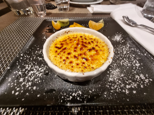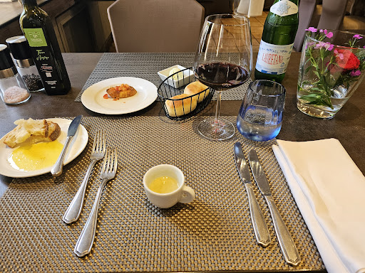 Trotzdem, dass das Restaurant sehr gut besucht war, haben wir ein tollen Tisch am Fenster bekommen ( ohne Reservierung ). Die Kellner haben sich für uns sehr viel Zeit genommen und uns hervorragend beraten. Das Menü war wirklich vom feinsten....drei verschiedene Vorspeisen, ein geniales Steak und zum Abschluss Himberfarfait. Vor dem Menü gab es noch einen Gruß aus der Küche....Kartoffelsüppchen mit Trüffel und Bruschetta. Erwähnenswert war der Grappa . Zunächst einen Hausgrappa, der schon extrem gut war. Anschließend eine Grappaempfehlung des Kellners..... Vorzüglich !!!