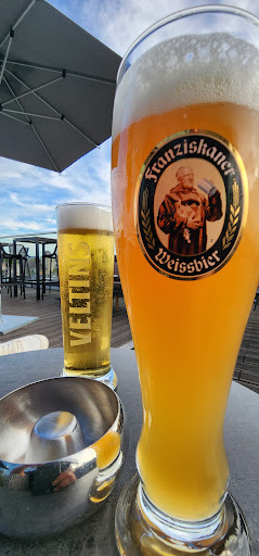 Das Restaurant/die Bar präsentiert sich von der Ausstattung und den Preisen her als ein gehobener Ort, und die versprochene Aussicht ist zweifellos ein großer Pluspunkt. Wer hier einen Sundowner genießen möchte, findet sicherlich ein ansprechendes Ambiente. Leider trübte der Service den Gesamteindruck unseres Besuchs erheblich. Die anfängliche Freundlichkeit der Bedienung konnte die deutliche Unaufmerksamkeit und Unprofessionalität nicht wettmachen. Eine Wartezeit von 35 Minuten, bis unsere Essensbestellung aufgenommen wurde, ist schlichtweg zu lang und zeugt von mangelnder Organisation oder Personalmangel. Ein weiterer Kritikpunkt betrifft die Handhabung der Speisekarte für größere Gruppen. Die Regelung, dass ab sechs Personen eine andere Karte gilt, wurde uns erst mitgeteilt, als wir bereits unsere Auswahl treffen wollten. Die anschließende Reaktion des Kellners, der uns das Gefühl gab, diese Information hätten wir uns selbstständig erschließen müssen, war nicht nur unprofessionell, sondern auch unnötig belehrend. Zumal dieser Hinweis in der regulären Karte fehlte. Hier besteht dringender Verbesserungsbedarf in der Kommunikation mit den Gästen. Auch das bestellte Essen konnte unsere Erwartungen nicht vollständig erfüllen. Der Burger für 24€ wies ein durchwachsenes Preis-Leistungs-Verhältnis auf. Während das Patty geschmacklich überzeugte, dominierten der Schinken und der verwendete Bergkäse den Gesamtgeschmack auf eine Weise, die nicht jedermanns Sache sein dürfte. Fairerweise muss ich sagen, dass wir alle den Burger bestellt haben und ich dadurch die anderen Gerichte nicht bewerten kann.