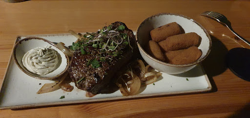 Der Service war super freundlich und aufmerksam. Wir hatten das Rinderfilet mit Kräuterbutter, Pommes und einen Beilagensalat. Der Salat war schon ein Highlight für sich – besonders der Krautsalat und die Rote Bete waren richtig lecker.