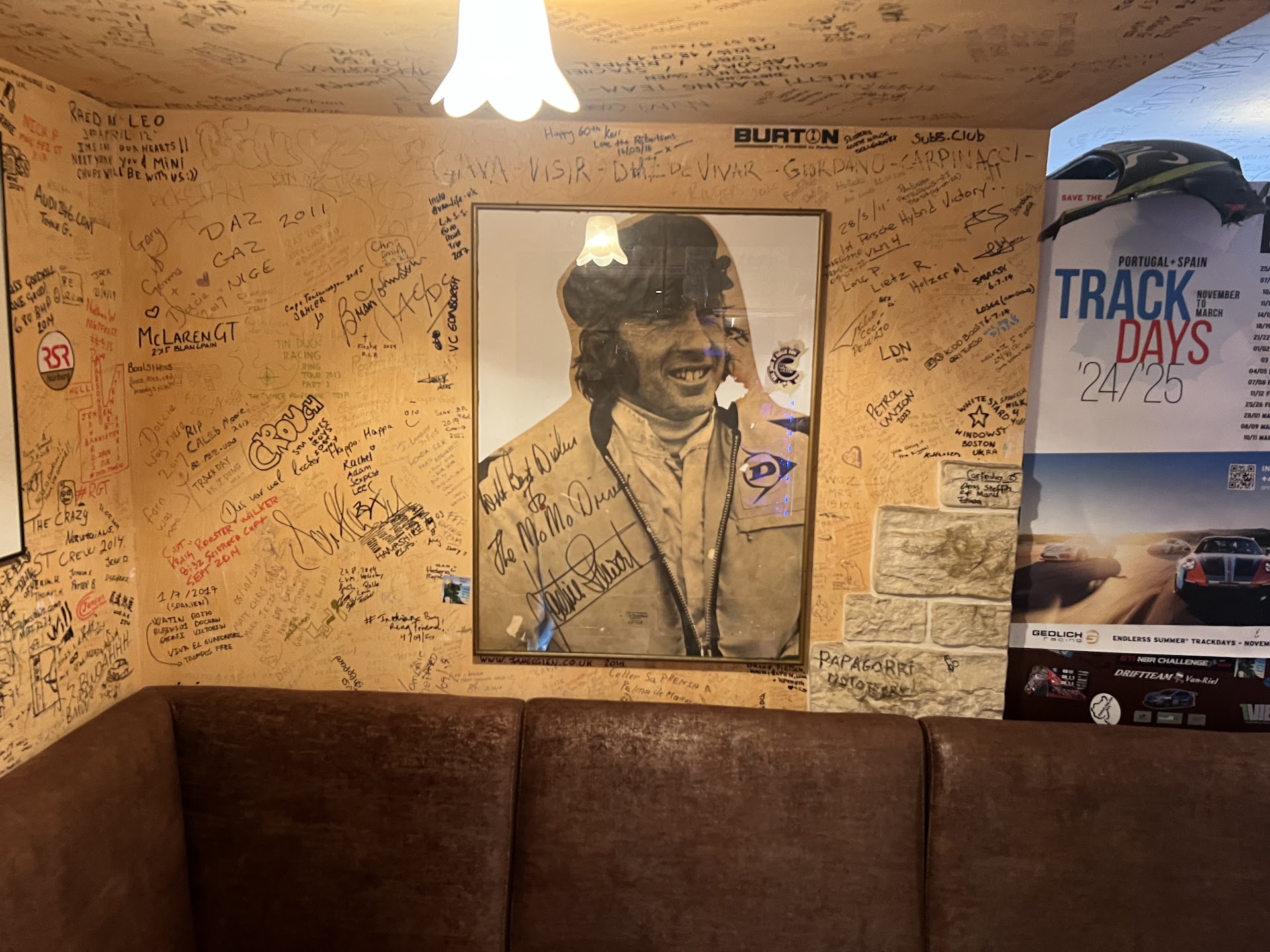 We were referred to Goto this place because of the Racing legends that have patronized this place over the years and left their mark… Honestly I think they made their mark and never came back… The food was something out of Kitchen Nightmares completely! The appetizer of Parmesan Mushrooms was a joke… literally a bunch of shaved Parmesan with prepackaged sliced muchrooms and was edible but we were hungry so it was enough to consume it before we got our food. For my entree I ordered the Argentinian Beef Fillet on the Hot Stone and it literally was a blob of meat on a hot stone… far from a fillet… the fries were terrible… and yeah definitely not worth €33 whatsoever. I felt ashamed of eating this afterwards as i definitely was ripped off. My partner had the pizza and it was like a 5 out of 10… we tried to see if the dessert would redeem the experience but ohh god completely wrong… I honestly think racers come here for the beer with the spirit of the legends and have drunk food because there’s no way any sober person would enjoy this food. I hope to god this place works on their stuff because it’s such a slap in the face for the legends that came here with such crap food. I saw the signatures I wanted to see… will I go back? For a beer yeah. But literally that’s it. Stay away from the food. Also we were over charged by €25 because they “accidentally” hit the wrong button when we checked out. Luckily we read the receipt and realized it. Also… for the record, I felt that I had to post this review because there is no way in heck this place is 4.4 stars…...