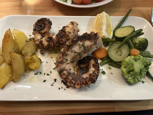 Read moreAus der Not eine Tugend gemacht… oder so ähnlich… Da die italienischen Restaurants in der direkten Umgebung am Dienstahg Ruhetag hatten fuhren wir spontan hierher. Wir wurden typisch italienisch herzlich empfangen , konnten uns einen Tisch aussuchen und fühlten uns spontan wohl. Der Kellner brachte sofort die Speisekarten incl. Tageskarte und sprach noch ein paar Empfehlungen aus, die nicht auf den Karten standen. Schnell wurden Getränke abgefragt und umgehend serviert. Der ausgewählte Oktopus vom Grill wahr phantastisch - außen leicht knusprig, innen weich. Das zur Nachspeise gewählte Tiramisu und die Variante ohne Kakao war portionsmäßig groß, reichhaltig und lecker. Zusammengefasst: eine...