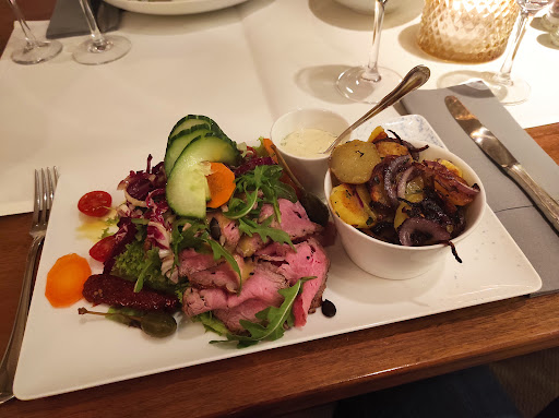 Am 7.2 2019 haben wir noch einmal das Restaurant besucht. Die Freundlichkeit, die Zuvorkommenheit und Kompetenz der Mitarbeiter waren so , wie man sich es als Gast wünscht. Unser Essen, ein Lachscarpaccio mit Jakobsmuscheln, Skrei an Kohlrabi-Lauchgemüse an Rieslingschaum, Surf & Turf, ein zartes, medium gebratenes Rumsteak, mit glasig gebratenen Garnelen an einer Kräutersauce, waren nicht nur für die Zunge sondern auch für das Auge ein Genuss. Dieser Abend bleibt uns in angenehmer Erinnerung, wir war...