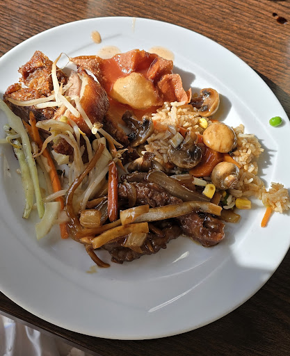 A buffet style restaurant with an option to pick your own food to cook. I choose kangaroo with some vegetables and noodles and Mongolian sauce. The sauce is very spicy but the dish was well prepared. Other options for meat to be cooked was zebra, two types lamb, beef. Overall the buffet had a good selection and taste very well for buffet food. Sushi and fresh salad fixings were also on the buffet. Appeared to be indoor seating only even though they face a...