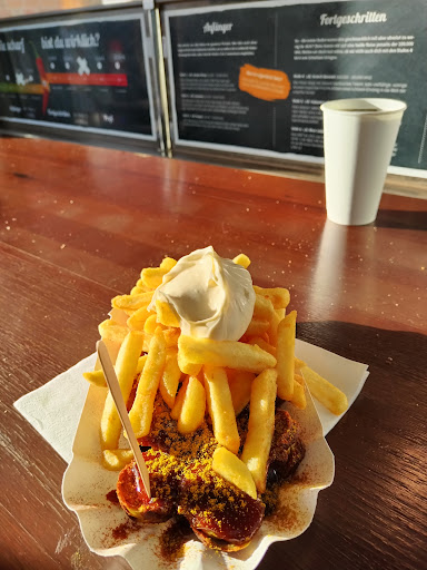 Read moreDer Imbiss Laden mit dem Hauptaugenmerk auf Currywurst spezialisiert in verschiedenen Variationen ist auf den ersten Anblick sehr gut besucht und macht einen sauberen Eindruck.