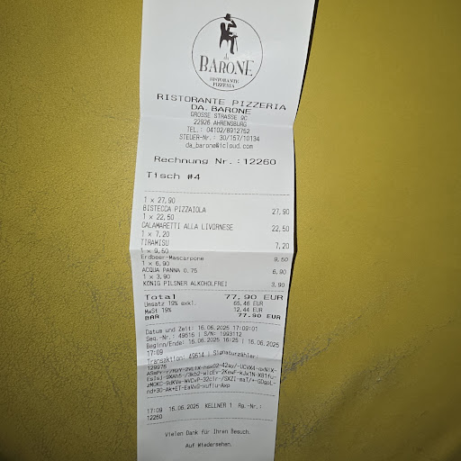 Am 16.6.25 besuchten wir wieder dieses Restaurant, das ich seit Eröffnung diverse Male besucht habe. Insofern kann ich die Entwicklung und den Werdegang bestens beurteilen. In der Küche hat es vor einiger Zeit einen Wechsel gegeben, der leider nicht zum Vorteil gereicht hat. Die Herrentoilette wurde renoviert, wobei ein nrues Urinal seit mehreren Monaten einen Riss hat, aber nicht ausgewechselt wurde. Das ist jedoch unwichtig. Wichtig ist der Geschmack der Gerichte, die Zubereitung und die Präsentation. Beim Service gibt es auch wieder Veränderungen. Auch die alten Inhaber haben wir seit Monaten nicht mehr gesehen. Heute bestellten wir " Bistecca Pizzaiola", 27,90 €, Calamaretti Alla Livornese, 22,50 €, Tiramisu, 7,20 €, Erdbeer Mascarpone, 9,50 €, Mineralwasser Aqua Panna, 0,75 l = 6,90 € und 1 Glas kleines alkoholfreies Bier, König Pilsener, 3,90 €.