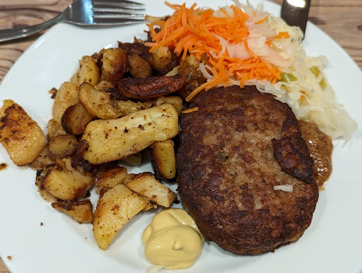 Schnitzel und Currywurst waren sehr lecker, nur die Pommes ließen zu wünschen übrig.
