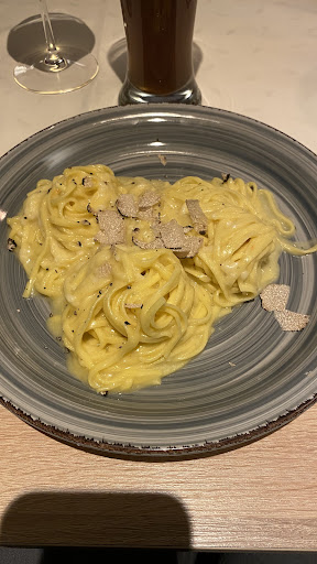 Read moreWaren mit einer größeren Gruppe (10 Pax) zu Gast. 5 Minuten nach Reservierung kam der Kellner schon das erste mal an den Tisch und fragte recht forsch, wo denn der Rest der Gruppe sei - es fehlten noch 4 Personen - denn sonst bräuchte er die Plätze für andere Gäste und wir das nächste mal doch für weniger reservieren sollten! Das Ganze hat er binnen 15 Minuten 4x wiederholt bis alle da waren. Dann dauerte es nochmal 20 Minuten, bis er dann endlich die Bestellung aufnahm. Das Essen kam recht zügig. Die Portionen waren geschmacklich okay. Aber das Preis-Leistungsverhältnis hat für uns nicht ganz gepasst. Die Nudeln aus dem Parmesan-Laib mit etwas Trüffel für 22,50€ waren eher eine Vorspeise. Es hätten einfach etwas mehr Nudeln sein können. Der Trüffel war auch sehr sparsam. Die Pizzen waren teilweise am Rand arg trocken und stellenweise richtig schwarz. Muss man mögen. Bei den Spaghetti mit Meeresfrüchten musste man die Meeresfrüchte schon fast suchen. Geschmacklich waren diese aber okay. Der Kellner war nach dem Essen recht unaufmerksam und eher damit beschäftig sich mit Kollegen und italienischen Gästen zu unterhalten, als nochmal nachzufragen, ob noch jemand Nachtisch, Getränke oder Kaffee wünsche. Mussten dann nochmals, nach mehreren Anläufen, 20 Minuten auf die Rechnung warten. Der grantige Kellner hat uns eigentlich den Abend etwas verdorben. Alles in Allem, wir werden nächstes mal wieder wo...