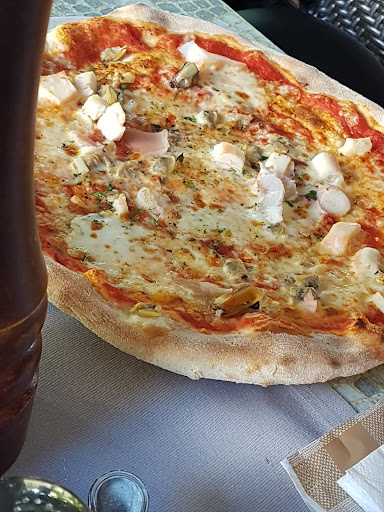 Unser spontan Besuch im Taormina heute war der Letzte . Der Kellner hatte eine eigene Art von Humor die nur er anscheinend verstand. Bei der Bestellannahme war noch alles ok, wir hatten ein Carpaccio , eine Pizza mit Meeresfrüchte (siehe Bild) auf der man die Meeresfrüchte suchen konnte, dazu hatten wir noch eine Minze Panna Cotta bestellt(die allerdings nie ankam und einfach vergessen wurde). Als das Carpaccio kam, baten wir die Kellnerin (wohl eine Aushilfe) um zwei kleine Teller, die auch prompt kamen, da wir uns das Carpaccio teilen wollten. Daraufhin kam der Kellner (der unsere Bestellung aufgenommen hatte) und nahm dem zweiten Teller wieder weg mit der Ansage es sei nur mein Carpaccio und mein Partner dürfe davon nichts essen. Verzeihung ,aber geht's noch??? Erst als wir kurz mit dem Kellner diskutiert hatten, blieb der zweite Teller da. Kurz darauf kam die Pizza, die mit extra viel Knoblauch bestellt war, leider ist diese Pizza wohl nur am Knoblauch vorbei gelaufen, denn es war keiner drauf. Innerhalb von ein paar Minuten wurden wir von Fliegen überfallen, worauf hin uns ein anderer Kellner eine Kerze aufstellte, die angeblich helfen sollte. Als wir gegessen hatten startete ich die Stopp Uhr am Handy, nach 15 Minuten fragte ich nach meinem Dessert. Nach weiteren 15 Minuten Wartezeit haben wir dann gezahlt, da das Dessert immer noch nicht am Tisch war und sind gegangen. Leider muss man hier einen Stern vergeben. Für diese Leistung heute würden wir eher minus Punkte vergeben. Das war nach mehreren Chancen die letzte. Wir gehen dort...