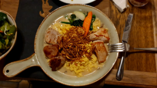 Die Essen kamen schnell und die Qualität war sehr gut, allerdings hätte der Zwiebelrostbraten für mich ein bisschen größer sein können. Trotzdem waren die Portionen nicht klein. Das Preis- Leistungsverhältnis stimmt noch.