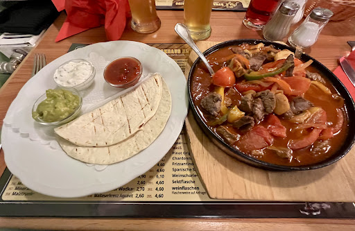 Das Essen fad, einfach auf den Teller geschmissen, keinerlei Dekoration auf dem Teller bis auf ein abgerissenes Blatt Radicchio. Die Soßen erinnern an die Testküche von Maggi oder Knorr. Zum Beispiel bei den Fajitas kriegt man eine Pfanne voll mit weich gekochter Paprika und ca 100 Gramm Fleisch (das glücklicher Weise essbar war), völlig fad und dazu zwei Mini-Tortillas. Schnitzel mit Pommes, was man in der Karte als Scallopina Milanese tarnt. Das Schnitzel hat dann auch eine beachtliche Stärke von 1-2 cm...