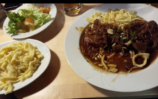 Ich war zum ersten Mal in dieser Gaststätte habe mich auch sehr gefreut weil man ja weit laufen muss um noch echt Schwäbisch zu essen Aber leider muss ich sagen dass mir das Essen nicht so sehr geschmeckt hat was sehr gut war waren die lendchen wirklich perfekt gebraten aber alles in einer Soße die etwas dick war mehr Soße als lendchen und sehr versalzen der Salat sah auf den ersten Blick sehr frisch aus und ich bestelle mir oft noch einen zweiten nach aber die Gurken waren nur drauf gelegt der grüne Salat war nur drauf gelegt nicht abgemacht oder Salatsoße drüber Es war auch nicht vergessen sondern es gibt kein Dressing dazu Aber jeder hat eine zweite Chance verdient und ich werde es nochmals versuchen In Zukunft halt Soße zum Salat Und die Soße zum Fleisch extra sonst sieht alles sehr matschig aus Und weniger Salz Ich esse gerne gut gewürzt aber das war wirklich Salz mit...