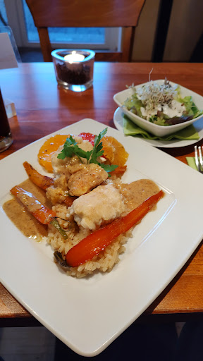 Neben leckeren, hausgebackenen Kuchen gibt es wöchentlich wechselende Speisen. Hier empfiehlt es sich jeweils Mittwochabends auf die Interseite zu schauen. Die Gerichte sind außergewöhnlich und von der Chefin mit Liebe zubereitet. Man schmeckt dass sie ihr Handwerk versteht.