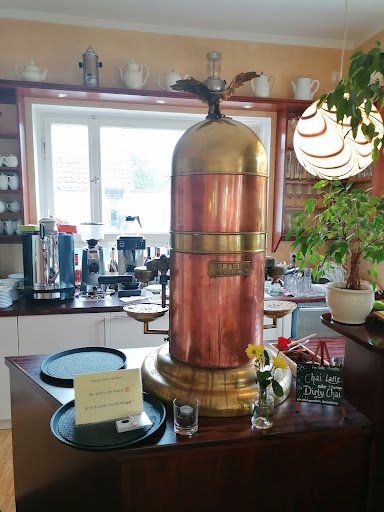 Im Sommer kann man auf der Terrasse sitzen und den Blick in den Garten genießen. Die andere Zeit innen im gemütlichen Café verbringen und die außergewöhnliche Espressomaschine bestaunen.