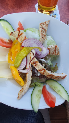 Only real positive point: The location is very nice, terrace overlooking a small pond. While waiting, we were looking at town map, waiter came and threw menu's on table and on top of map without saying a word. Ordered 2 entrees for adults, one entree for child and 1 childrens meal for second child. Wanted all of those together and then 2 adult main courses. But all 6 meals came at the same time. Questionable if they speak enough German. Only the terrace was open when it started raining the staff was only busy carrying tablecloths inside, we had to carry our own plates and drinks inside through the rain. Everything was deep fried battered even vegetables. I was in the mood for fish and ordered the Plaka platter with different kinds of fish and yes, all deep fried battered. Our bill was €69,40, I gave €70, waitress said "thank you, goodbye" and turned her back. She took it upon herself to round off the bill. It was only €0,60 but I found this unacceptable. Stay away, I'm sure there are better options...