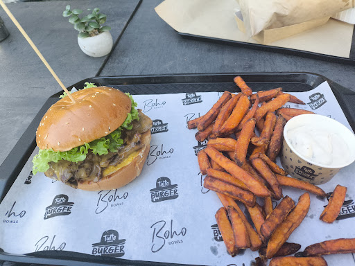 We had ordered a philly steak burger with sweet potato fries and a doner sandwhich. My sweet potato fries did not even have a plate or something it was just put on the tray.
