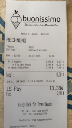 Read moreWar heute mit meiner Familie (zwei Kleinkinder ) das dritte mal bei denen Eis essen . Beim ersten Besuch musste ich halbe Stunde warten bis die Dame zu uns kommt und abkassiert (nur eine Person darf anscheinend abkassieren ) beim zweiten Mal wurde eine Kugel vergessen ( die nächste ging dann aufs Haus ) bei beiden Besuchen gabs trotz allem Trinkgeld . Heute war die Krönung meine kleine Tochter 2 j. Hat ausversehen mein Erdbeer Becher umgekippt wegen einer Wespe. Die Kellnerin war direkt nebendran hat es gesehen und garnicht reagiert weder weggeräumt noch nachgefragt etc . Mein Mann hat alles sauber gemacht und rein gebracht . Drin wurde er skeptisch angeschaut nach dem motto interessiert uns nicht . Er hat erneut einen bestellt . Mussten dann auch den den wir nicht mal gegessen hatten bezahlen ( also wirklich nicht mal einen Löffel probiert ,da es direkt nach dem Servieren umgekippt ist , die Dame hat es wie gesagt gesehen . Werden nie wieder dahin gehen unsere Verwandtschaft...