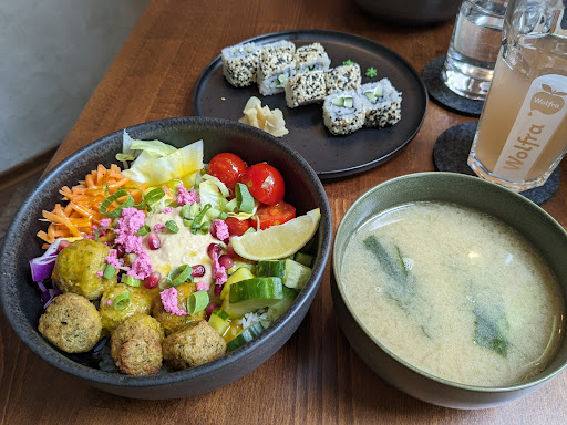 Read moreAls wir angekommen sind, war unsere Bestellung bereits fertig und nicht nur wurden wir super sympathisch begrüßt, sondern das ganze Ambiente gibt einem ein sehr angenehmes Gefühl. Wir haben eine Baked Falafel Bowl bestellt, die unheimlich lecker war und besonders die frischen Zutaten haben uns begeistert! Das ganze Zusammenspiel der fruchtigen und herzhaften Noten war sehr gut. Zusätzlich haben wir Sticky Mango Reis genommen, welcher nicht zu süß war und deswegen ein gutes Finish abgibt, nachdem man sich nicht zu voll fühlt. Die Edamame ist natürlich ein Muss bei jeder Bestellung :)