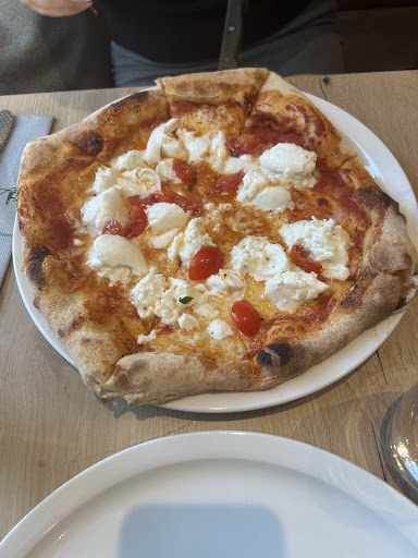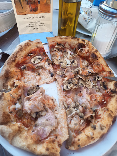 Read moreWarum nur 3/5 Sterne? Aus dem Grund, dass das Restaurant mit neapolitanischer Pizza wirbt. Und von guter neapolitanischer Pizza ist die Pizza weit entfernt. Die Pizza an sich ist ok. Bisschen kleiner als die Pizzen in der Umgebung und der Rand ist auch bisschen schwärzer, aber der Geschmack ist ok. Aber der locker luftige Teig, der im Rand Bläschen bildet und bei dem jeder Bissen ein Traum ist, der fehlt. Auch haben sie keinen echten Pizzabäcker. Der Bäcker, der unsere Pizzen gebacken hat, musste die ganze Zeit bei der Kellnerin nachfragen, was er auf die jeweilige Pizza für einen Belag legen musste, weil er es nicht wusste. Auch war das Restaurant fast nicht voll, und wir mussten über 1h auf unser Essen warten. Sie hatten unsere Bestellung zwar mit einem anderen Paar vertauscht und sich dafür zwar herzlichst entschuldigt, aber selbst, wenn dieses Vertauschen nicht passiert wär, hätten wir auch knapp 1h gewartet. Der kleine Beilagensalat war auch wirklich sehr sehr klein.