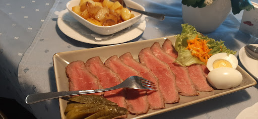 Read moreGuten Morgen, leider habe ich den Eindruck das die meisten Bewertungen aus einem anderen Restaurant stammen da ich oder wir,,vier Erwachsene und ein kleines Kind dort nichts von dem erlebt haben was sooo hoch gepriesen wird! Üppiges und qualitativ hochwertiges Essen,erfahrenes Personal in Küche sowie Services! Was es wirklich gibt ist die herrliche Aussicht,die ich aber auch mit picknicken hätte und Essen was dann auch schmeckt! Für uns waren die Herrschaften mit allem überfordert! Das Essen wurde warlos auf den Tisch gestellt so das man selber erst einmal schauen musste was zu welchem Essen gehörte! Die Kartoffeln zur Roulade kamen recht spät,so das das Essen fast kalt war! Gemüse der Saison:,, was geschmorte Paprika war aber nicht zu vergessen ein Scheibchen Zucchini die dann ja wirklich aus der Saison stammte! Das Essen meiner Lieben war auch nur lauwarm ,aber die Preise waren heiß kann ich nur sagen! Im Internet wurde die kleine Rinderroulade mit 22,90,- Euro angeboten tatsächlich 27,90,-vor Ort,die gebratene Leber mit Apfelringen 17,90,- Euro vor Ort 22,90,-Euro wobei wir die Apfelringe vermissten stadessen lag eine verlorene Scheibe Ananas unter dem so genannten Kartoffelpüree! Vom Aussehen dachten wir das es gebackener Käse sei, mit einem gutem Kartoffelpüree hatte das nun gar nichts zu tun! Die Salzkartoffeln zur Roulade war im heißen Wasser aufgewärmt und genau so haben sie auch geschmeckt fade und geschmacklos! Wir wollten dann das Essen mitnehmen, da uns der Hunger vergangen war, wo man die Auskunft bekam das sie keine Schalen zum einpacken hatten! Na so was, dass hatte ich auch noch nicht erlebt! - einen - Stern⭐Was für ein Armutszeugnis war das denn? Die Produkte wurden ohne Respekt vor der Umwelt und für jedes Tier was dort auf dem Teller landet hergestellt! Schade das es dafür sein Leben lassen musste....Also wer dort die Sterne verteilt hat muss wohl im Wahn des verteilens gewesen sein! Zwar kam zu Ende hin der Chef und fragte nach der Zufriedenheit was wir nicht ehrlich beantworten wollten da die Terrasse voller Gäste war! An Hand der Teller die nicht leer gegessen waren kann ein aufmerksamer Mensch ableiten das es wohl doch nicht so gut war! Das ganze Team war sehr jung und unerfahren! Das Restaurant wurde uns sehr (empfohlen ) da es die Location für eine Hochzeit und auch für ein namenhaftes Reiseunternehmen war! Für die,,à la carte" Gäste scheinen aber leider andere Prioritäten gesetzt worden sein! Bitte nicht weiter so!!! MFG...