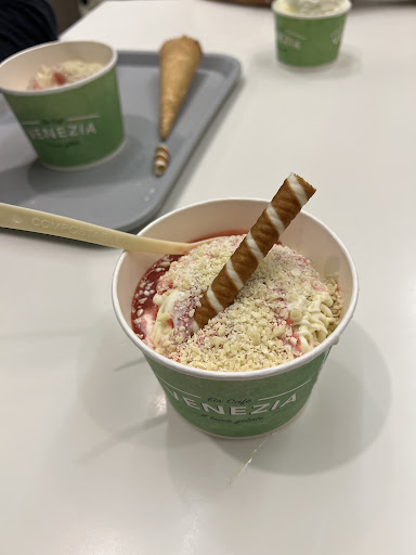 Read moreWir sind unvoreingenommen zu Besuch gekommen. Leider wurden die vorherigen Rezensionen erfüllt. Aus dem Plan gemütlich einen hübschen, leckeren Eisbecher zu essen wurde leider nix. Wir hatten 2 einzelne Kugeln Eis und einen Spaghetti - Eisbecher. Das Eis war insgesamt sehr geschmacklos und der Eisbecher überhaupt nicht gut angerichtet. Der Anblick in den Pappbecher lud uns jetzt nicht zum entspannten Verweilen ein. Das Vanilleeis , was nach nix schmeckte war komplett überdeckt von Erdbeersoße und weißer Schokolade, also nicht Mal mehr als Spaghetti -Eis erkennbar. Insgesamt sehr schade. Service können wir nicht bewerten, da es diesen gar nicht gab. Schnelle Bestellung am Fenster, Zack gemacht und Tschüss, Platz suchen. Das war's. Die Lage des Einscafés ist jedoch schön, auch der Laden an sich macht einen sauberen und hübschen Eindruck. Wir sind der Meinung mit ein bisschen mehr Liebe am Eis könnte da einiges raus...