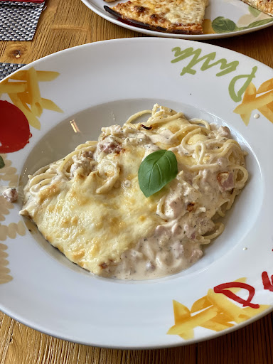Leider nur 1 Hochstuhl vorhanden welcher in Benutzung war - bekamen ein nicht auf den Stuhl passendendes Kissen als Sitzerhöhung. Getränkebestellung und Erfragen der Vorspeise gingen recht zügig. Das Erfragen der Hauptgerichte wurde scheinbar vergessen... verspätet fiel es der Bedienung jedoch wieder ein... kurz bevor die Vorspeise gebracht wurde, auf welche wir über 45Minuten, mit mittlerweile hungrigen unruhigen Kleinkind, warten mussten. Vorspeise: Pizzabröttchen mit Spinat - waren in Ordnung. Hauptspeise dann nochmal 30Minuten später. 3 Pizzen waren okay, aber nicht herausstechend gut. 1 Handvoll trockene Nudeln ( bewusst keine Kinderportion, weil unser Sohn, die eh nicht geschafft hätte ). 5x Getränke...bei der Wartezeit leider unumgänglich - davon 1x falsch serviert. Wir mussten trotz leerem Lokal 2x, mit mittlerweile schreiendem Kind ( weil tot müde, bei so langer Wartezeit ) um die Rechnung bitten, obwohl beide Bedienungen nur hinter dem Thresen waren und gespült haben.