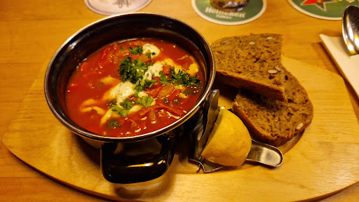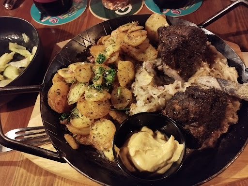 Zu teures Essen!!!!! Magere Portionen!!!!! Sehr dunkles/r Restaurant/Gasthof!!!! Schroffe, unfreundliche Chefin!!!!! Aufgrund der guten Bewertungen sind wir dort leider hin. Totaler Reinfall ehrlich. Geht da nicht hin. Die Speisen konnte man zwar essen war aber auch nur befriedigend. An der Kürbis-Kartoffelsuppe hätten mehr Gewürze rein kommen können ebenso wie bei den Käsespätzle. Die dreierlei Crostini waren zwar mit versch. Sachen belegt, hat aber als Vorspeise um die 8 Euro gekostet!!!!!!! Viel zu teuer für 3 kleine, belegte Scheiben Brot. An den Gerichten, was wir gegessen haben, hat einfach der nötige Pfiff gefehlt. Die Portionen waren wirklich sehr mager. Der kleine Schokokuchen (der war definitiv aus der Packung, weil der papp süß war und kaum nach Schokolade geschmeckt hat) mit bisschen Eis und bisschen Früchten hat fast 6 Euro gekostet!!!! Viel zu teuer. Das Essen hat sich nicht gelohnt. Außerdem war es in der Kulisse so dunkel und kalt. Eine große Auswahl an schönen Sitzplätzen hatte man echt nicht. Hatten uns erst in eine sehr dunkle Ecke gesetzt und danach in die Holzhütte. Im Großen und Ganzen ist es überhaupt nicht empfehlenswert!!!!!! Das einzige wirklich Gute waren die Cocktails. Ich verstehe diese ganzen positiven Bewertungen nicht. Das muss doch alles fake sein, dass man sowas gut findet. Geht lieber ins Theatercafé oder in den Ratskeller. Da bekommt ihr viel mehr für euer Geld!!! Wir kommen...