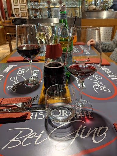 Read moreSolides italienisches Restaurant ohne größere Überraschungen. Besuch Fr 12.11.21. Das Restaurant ist gut frequentiert und eine Reservierung notwendig. Das Ambiente im Innenbereich ähnelt ehr dem Landhausstil als einer liebevollen italienischen Trattoria. Die Platzdecken aus Papier an jedem Sitzplatz mit dem Namen des Restaurants wirken billig und sind meiner Meinung absolut überflüssig und altbacken. Das Personal ist sehr freundlich und aufmerksam und verleiht dem Lokal einen professionellen Charme. Die Getränkekarte ist vielfältig, italienische Klassiker sind vorhanden. Die Speisekarte ist umfassend aber nicht überladen und zeigt eine klassische Auswahl der ital. Küche ohne in die gehobene Gastronomie abzuschweifen. Die Hauptspeisen sind geschmackvoll und in einer klassischen Tellersprache gehalten. Die Pasta ist sehr zu empfehlen und wunderbar angerichtet. Die Pizza ist in Ordnung, der Geschmack des Pizzaboden unspektakulär - hier fehlt der Steinofen um einen Mehrwert zu generieren. Das Preis-Leistung-Verhältnis ist in Ordnung und passt, als Fazit ist Bei Gino ein klassisches Familienrestaurant und auch für die gesellige Runde zu...