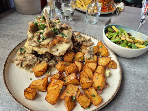 Die Quantität hat bei allen Gerichten an unserem Tisch keinen Überladenen Eindruck Hinterlassen und ich wurde völlig statt! Ich hatte das Pfefferschnitzel mit Bratkartoffeln, wie ich sie noch nie zuvor gegessen habe! Die Schnitzel waren nicht Übermäßig Paniert aber sehr Zart und Saftig! Auf Salate hatten wir bis auf unsere Freundin Verzichtet, da wir erstens die Fotos im Kopf hatten und zum Nachbartisch sehen konnten um zu sehen, dass die Fotos den ist Zustand aufgezeigt haben. Für uns Drei, wäre es mit Salat "to much" geworden! Zurück zu meinen Bratkartoffeln, die wie mir verraten wurde, zuerst separat Vorgebraten waren und jetzt kommt das der berühmte das Geheimnis, die Zwiebeln, der Speck wie eine große Portion von Kräutern, die sehr lecker geschmeckt haben, wurden dann wie mir die Service-Leitung auf meine Frage erklärt hatte, dass dieser Mix kurz vorm Servieren nochmals zusammen in einer Pfanne Geschwenkt werden! So gute Bratkartoffeln habe ich noch nie gegessen wie heute Abend dort! Sie waren auch nicht, wie schon so oft wo anders erlebt total Über-Fettet! Genau Richtig wie sie sein sollen! Meine Frau und unsere Freundin hatte sich für eine gefülltes Schnitzel auch als Cordon Bleu bekannt mit Pommes entschieden, auch die beiden hat es sehr gut geschmeckt!