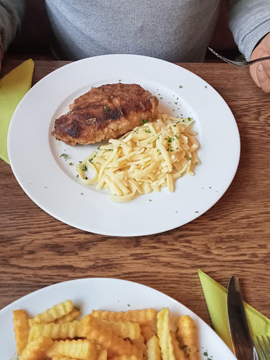 Es gibt eine tolle wie Reichhaltige Tageskarte mit ganz tollen Speisen und die groĂe Karte Erst, Wahnsinn! Es besteht ja so hier und da der Eindruck, bei do vielen Speisen, kann doch nicht alles frisch sein? Entwarnung hierzu, Alles was ich gesehen habe und an unserem Tisch Ausprobieren konnte und habe, hatte ich als Beilage zu meinem Balkan Schnitzel mit Bei festen Balkan GemĂŒse, dazu ganz toll zubereitete Bratkartoffeln mit Speck und Zwiebeln, wie sie meine Frau auch zubereitet, kann ich diese nur Empfehlen! Da ich das GemĂŒse hatte, habe ich mir an der sehr groĂen Salat Theke keinen Salat dort zurecht gemacht, aber meiner Schwester hat ihr Salat sehr gut geschmeckt! Die Theke hat bei mir einen sehr frischen und sehr Reichhaltigen Eindruck hinterlassen! Ach so bei meinem Balkan Schnitzel bzw. waren es zwei Schnitzel, die nicht zu schaffen waren, Lagen oben Auf panierter sehr gute wie echter SchafskĂ€se und es hat mir mit der Kombination mit Aiwa und Zaziki sehr sehr gut geschmeckt! Die Preise fand ich auch Human, also nichts Ăberteuert! Meine Frau hatte ein Cordon Bleu und ihr hat es such sehr gefallen!đ Meine Schwester hatte einen ich glaube ihr Essen hieĂ Storchennest Teller mit sehr viel Fleisch frisch vom Grill und sah sehr lecker aus, was nach meinem Test nun auch bestĂ€tigen kann! Wer sehr gute und frische QuantitĂ€t und gute QualitĂ€ts Essen sucht, kann im Storchennest seine Suche beenden!