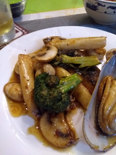 Das Buffet, obwohl nichts Besonderes für einen kleinen Familienbetrieb, bot dennoch eine Auswahl an Gerichten, die für jeden etwas bot. Doch der wahre Höhepunkt war der Service, der sich wie eine Achterbahnfahrt anfühlte. Die sehr junge Bedienung jonglierte geschickt zwischen den Tischen, nahm Bestellungen auf und servierte mit einer Selbstsicherheit, die beeindruckend war. Es war, als ob sie schon Jahre in diesem Geschäft tätig wäre. Ihr Talent und ihre Fähigkeiten waren bemerkenswert und trugen zu einem unvergesslichen Erlebnis bei.