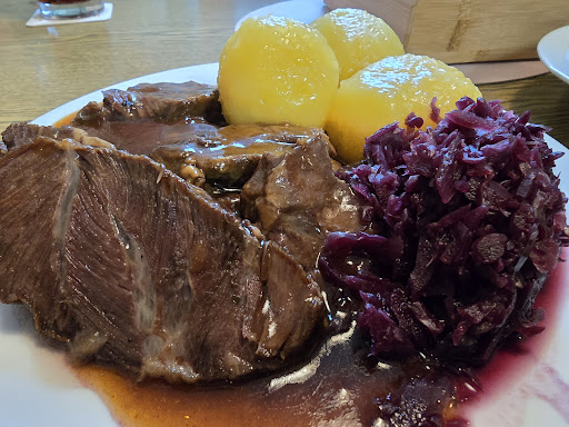 Gasthof Weisses Ross. Wenn man Lust auf ehrliche, gutbürgerliche Küche hat, bei der man weiß, was man bekommt, ist der Gasthof Weisses Ross in Albstadt immer eine sichere Wahl. Auch bei meinem letzten Besuch wurde ich wieder einmal voll und ganz überzeugt. Das Essen: Ein Gedicht aus Ochsenbäckchen, Knödel und Rotkohl. Meine Wahl fiel auf einen Klassiker der schwäbischen Küche: die Ochsenbäckchen. Und was soll ich sagen? Es war genau die richtige Entscheidung. Das Fleisch war butterzart geschmort und zerfiel fast von allein auf der Gabel – ein klares Zeichen für eine lange und sorgfältige Zubereitung. Dazu gab es zwei herrlich fluffige Knödel, die perfekt waren, um die köstliche, dunkle und kräftige Soße aufzunehmen. Jeder Tropfen davon war ein Genuss! Das Apfelrotkohl, das als Beilage serviert wurde, bot mit seiner feinen, fruchtig-würzigen Note den idealen Gegenpart zum deftigen Fleisch. Wie man es vom Weissen Ross gewohnt ist, war die Portion sehr reichhaltig. Hier wird man definitiv satt und geht mit einem zufriedenen Gefühl nach Hause. Service und Fazit Die Bedienung war wie immer freundlich, aufmerksam und unkompliziert. Man fühlt sich hier einfach willkommen. Nach dem wunderbaren Hauptgang passte auch noch ein guter Kaffee, um das Mahl gemütlich abzurunden. Fazit: Wer eine authentische, qualitativ hochwertige und sättigende Küche in einem traditionellen Gasthof-Ambiente sucht, ist im Weissen Ross goldrichtig. Es bleibt eine Top-Adresse in Albstadt für ein Essen, das von Herzen kommt und einfach guttut. Uneingeschränkt...