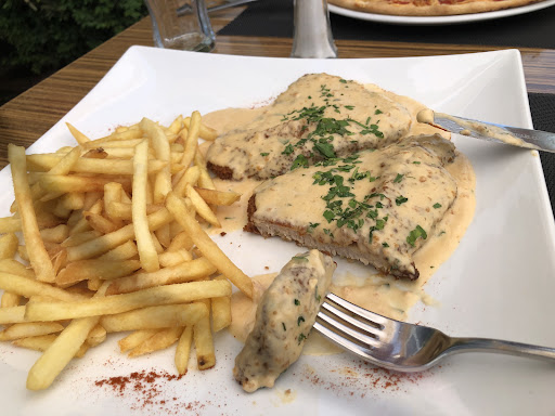 Read moreVorab: Wir sind Stammkunden und bestellen oft mit dem Verein. Waren nun anlassbezogen zu Besuch. Qualität vom Essen für diese Preisklasse wirklich gut, alle meine Gäste waren ehrlich zufrieden (Vorspeisen Salate, Bruschetta, Hauptgerichte u.a. Saltimbocca, Schnitzel, Pizza, Lachs, Pasta. Nachtisch Tartufo...) Leider SEHR unfreundlicher Empfang und Schreierei aus der Küche bei gekipptem Fenster (geht gar nicht), Bedienung gewohnt extrem gereizt und komplett überfordert mit Allem, egal wie nett und langsam man bestellt. Und im Sommer möchte der ein oder andere Gast vielleicht doch ein zweites Getränk...zwinker smiley...in dem Fall...was würden Sie tun? Bei den Nachbartischen ähnlich. Wir kommen gerne wieder, aber es gibt noch Potential nach oben. Zumindest einen freundlichen Empfang kann man erwarten. Daher nur 4...